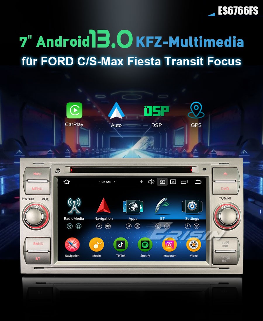 ES6766FS 7" Acht-Kern Android 14.0 Auto Multimedia System CarPlay & Auto GPS TPMS/DVR/DAB+/DTV-IN...