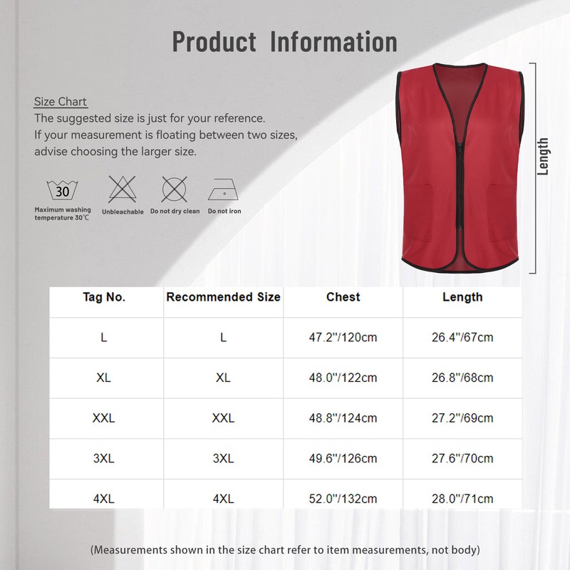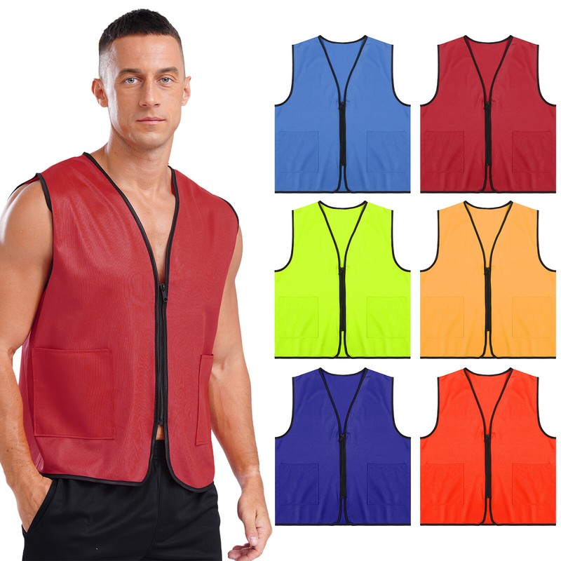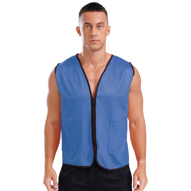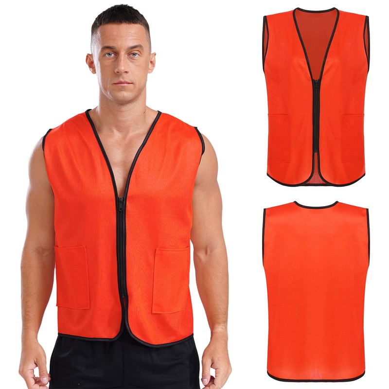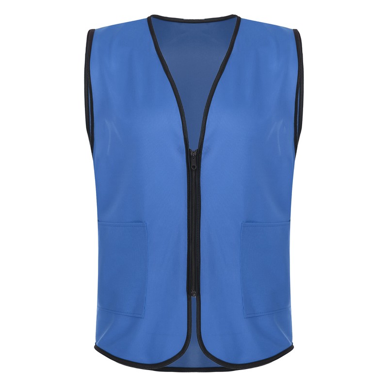 Unisex adult V-neck sleeveless vest with 2 pockets for carrying essentials, and zipper closure allows for easy wearing.