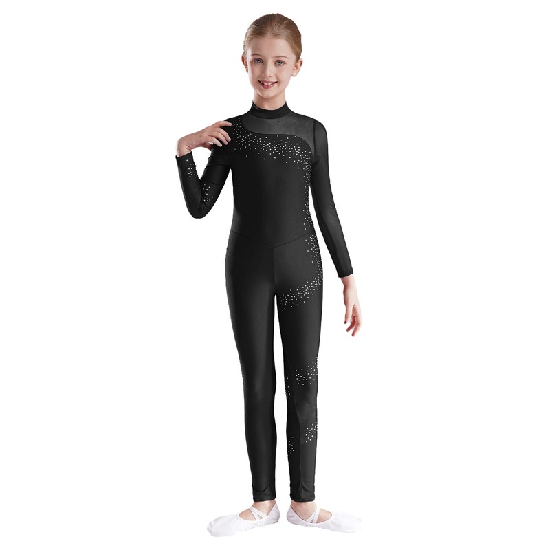 Full length gymnastics jumpsuit ensures total movement and flexibility when leaping, dancing or tumbling.