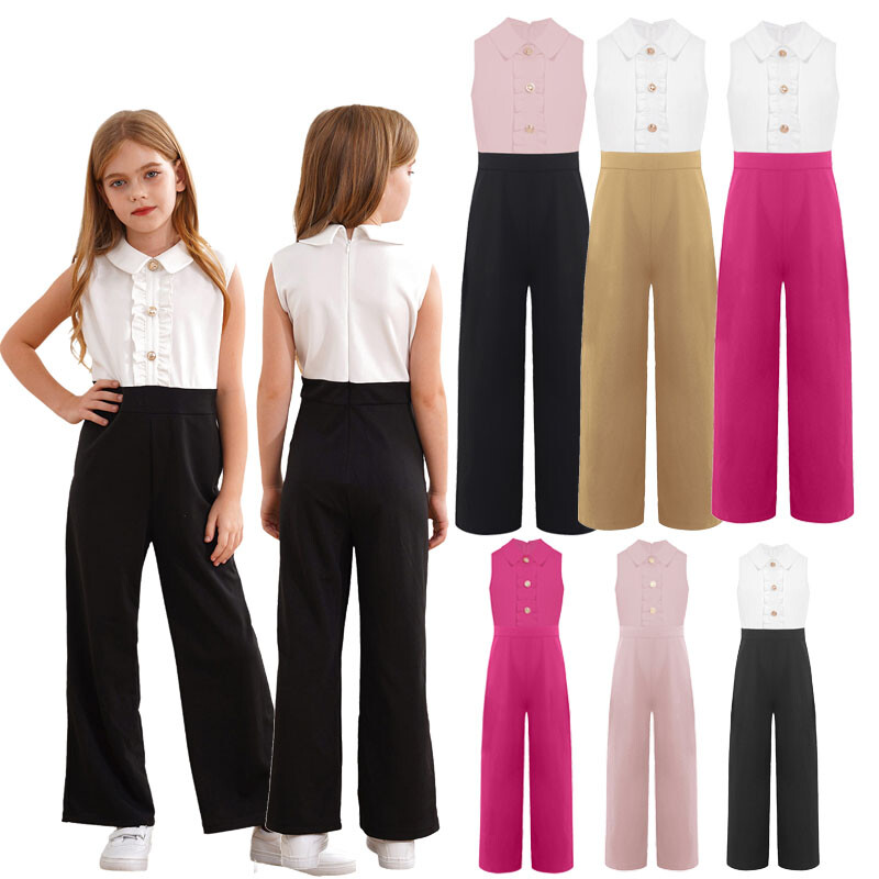 Long sleeve jumpsuit for girls, keyhole back, mock neck with press buttons for easy wearing and taking off.