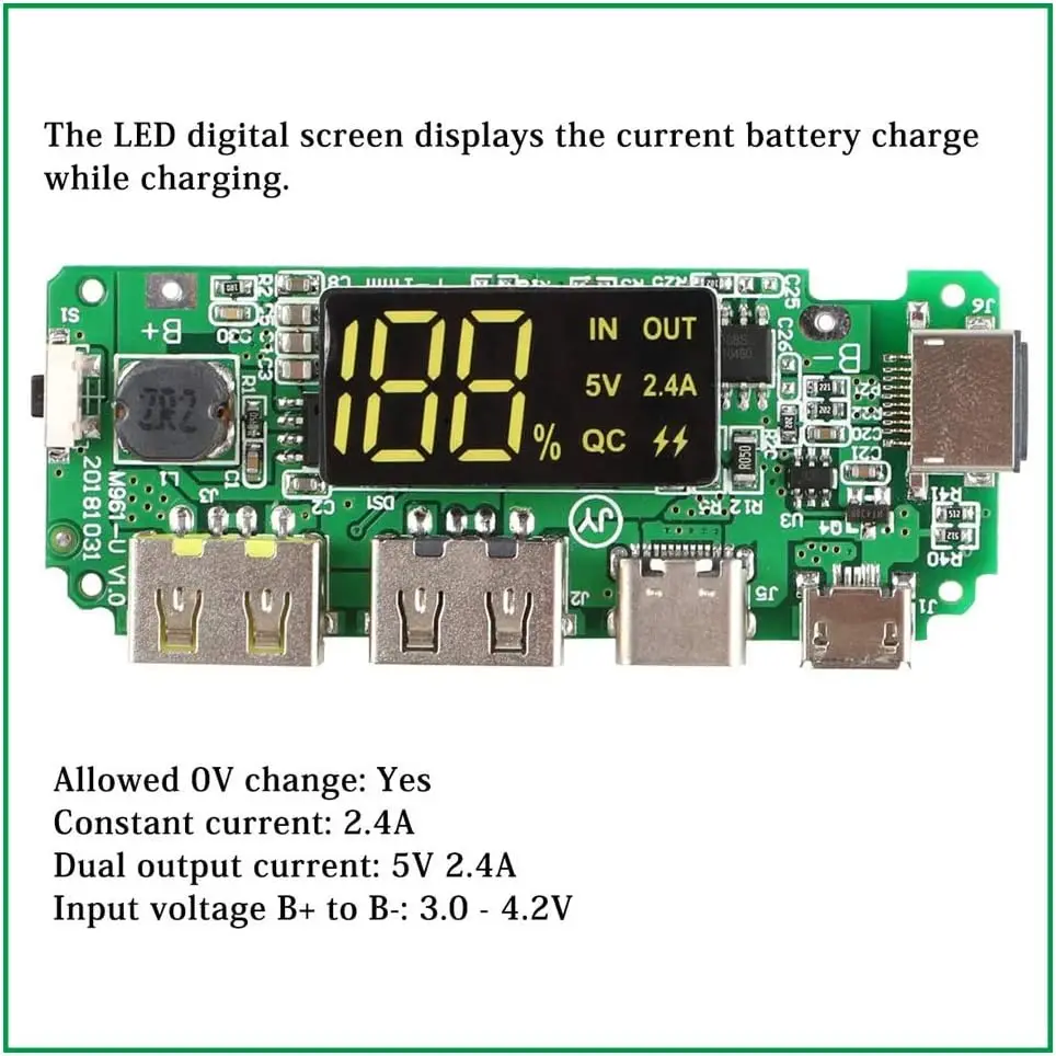 2Pcs 18650 Lithium Battery Charger 5V 2.4A Dual USB Circuit Board Digital LCD Display Module with Overcharge Overdischarge Short Circuit Protection