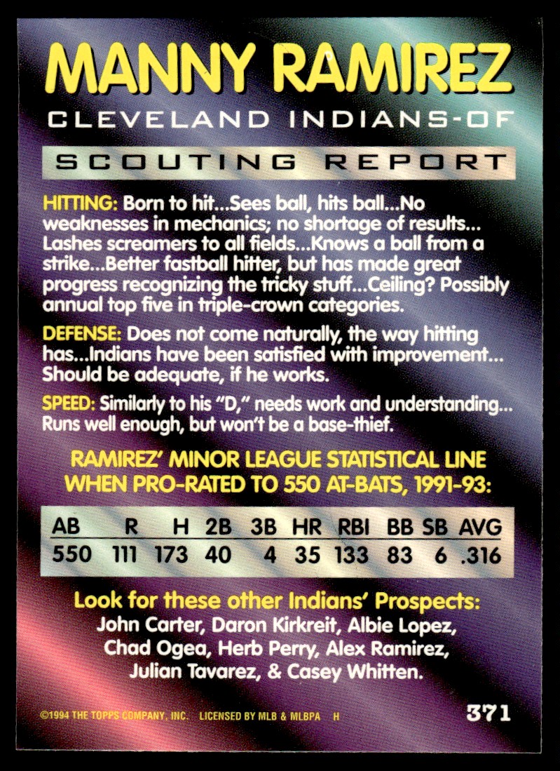 | 1994 Bowman Foil Manny Ramirez #371 |