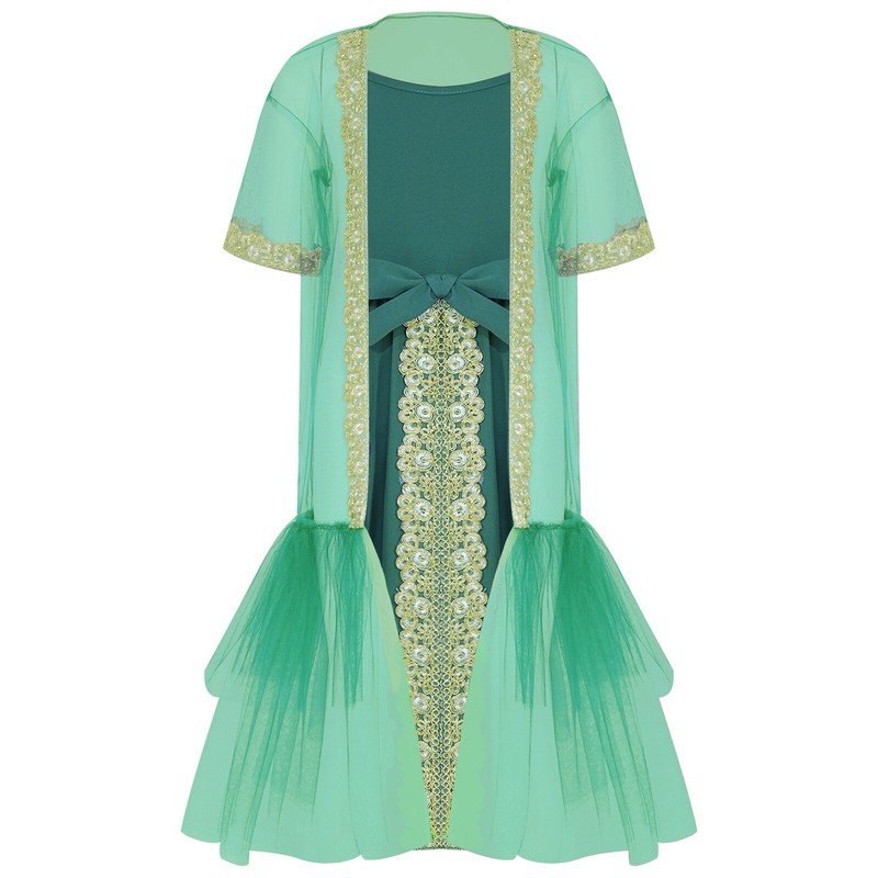 Girl’s short sleeve ruffled cloak with glittery embroidered applique trim adds a luxurious and elegant feeling.