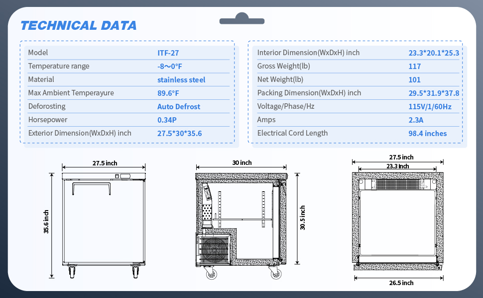 freezer temperature: 33℉~41℉, intelligent temperature control, can