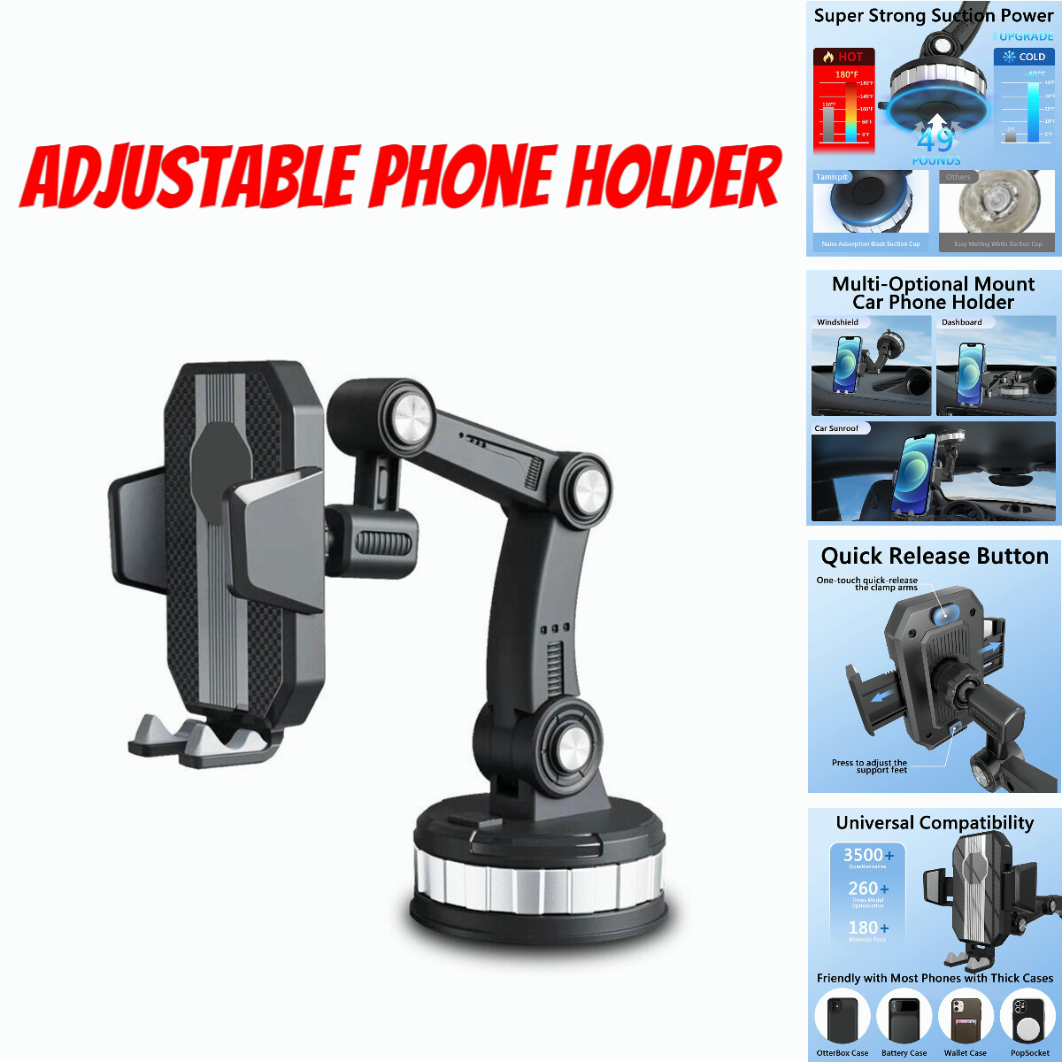 1. Extended version of the joint adjustment mobile phone holder, made of high-quality PC + ABS material, can be firmly installed in the dashboard windshield, a small car bracket satisfies your different needs, suitable for most sedan, pickup , SUV, truck, taxi.