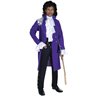 Purple Pop Star Let the purple reign begin! This regal rocker costume features long purple jacket, shirt front, and black pants with silver buttons on the leg. Available Size: Standard (Fits waist sizes 34"-38" and chest sizes 42"-46".) Guitar, wig and shoes are not included.