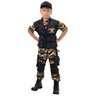 This Seal Team Costume For Boys is great for military buffs! Boys will look ready for service in this authentic-looking Navy Seals costume. Great for Halloween parties and trick-or-treating! Polyester. Includes: • Jumpsuit • Vest • Thigh • Holster • Thigh pouch • Knee pads • Hat Made in the USA.