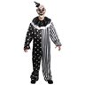 Kill Joy Clown Adult Costume. This clown will scare and chase his victims through the carnival tents! Costume includes: Black and white nylon costume with full over-the-head latex clown mask included. Available Sizes: Extra Large 46-48.