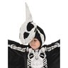 Swoop in and make a statement with this Toddler’s Pterodactyl Halloween Costume. Unlike your normal dinosaur costume, this pterodactyl costume will turn heads with its black wings and hood. Prehistorically precious! Toddlers will fly into the Halloween party and steal hearts while they score more Halloween candy! Dress their toddler friends as T-Rex and other dinosaur costumes for an adorable group costume. Find more toddler Halloween costumes available on this website. Includes: • Jumpsuit with realistic silk-screened bone design with attached feet • Matching pterodactyl bone hood • Mitts Imported.