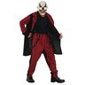 Great for the sideshow and for a lot of other costumes uses as well! Black and red vertical-striped 3/4 length coat and matching pants with attached black suspenders. Lining of coat is black. Mask not included.