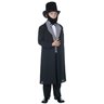 Perfect costume for school plays and patriotic events! Black long jacket with attached vest and wrist ruffles comes with matching pants and a white shirt front. Add your own hat beard shoes and socks.