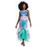 From the new highly-anticipated Little Mermaid Live Action Movie, here is our amazing Ariel Mermaid Deluxe costume! Beautiful shimmery dress is printed to look like mermaid scales in rich hues of blue, green and purple, with a little sequin sparkle at the waist! Attached fin ruffles at the hemline and tail have multiple layers of lovely sheer sea colors. Shoes are not included. Made of 100% Polyester. Spot clean with damp cloth, air dry. Women's Medium fits sizes 8-10. © Disney.