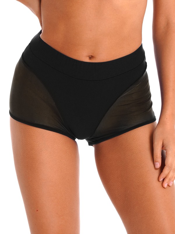 Women's Stretch Shorts Sexy Sheer Mesh Patchwork Hot Pants Bottoms Underwear