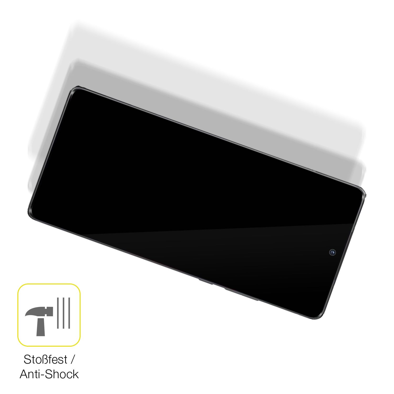 Anti-Shock: Stoßdämpfende, absorbierende Kratzschutzfolie. Vermindert die Gefahr eines Display-Glasbruches, wenn Ihr Gerät an die Tischkante prallt oder herunterfällt.