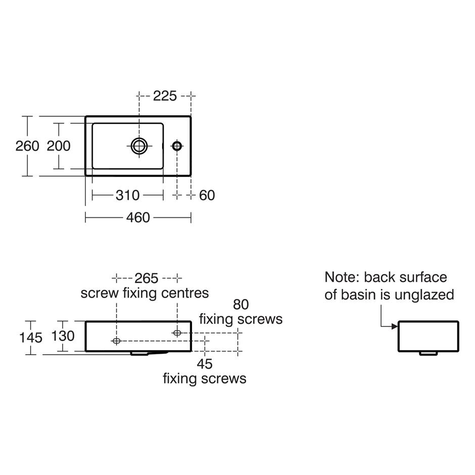 Armitage Shanks Edit S 260mm Wall Hung Basin 1 Tap Hole S080601