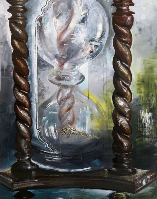 Bernhard Martin, Hourglass, Oil on Board, signed and dated verso