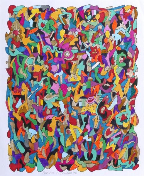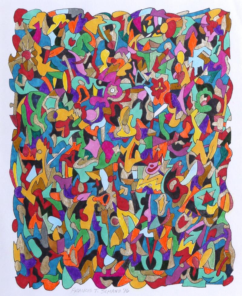Playful abstract drawing done in ink and marker by American Artist Francis Schanz