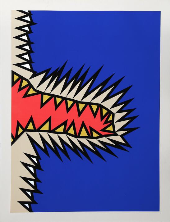 American artist Nicholas Krushenick's use of bolder colors and lines similar to illustration, yet maintaining use of abstract figurative forms, mark him as one of the original practitioners of Pop Art. He is also associated with the Hard Edge abstract artists. This silkscreen print is hand-signed and numbered in pencil.
