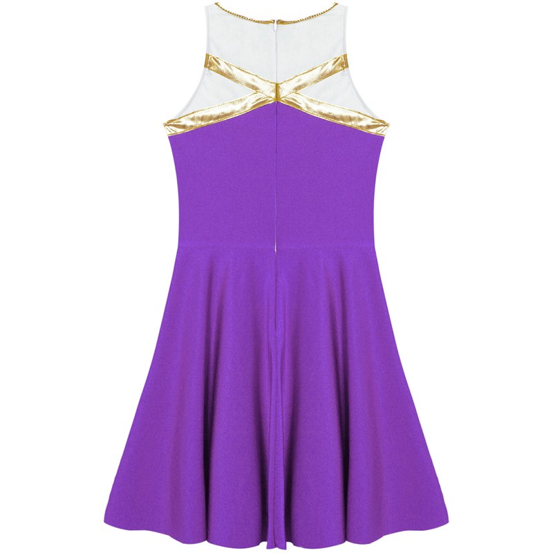 Metallic patchwork dress with curved hem makes your girl eye-catching and looks more energetic.