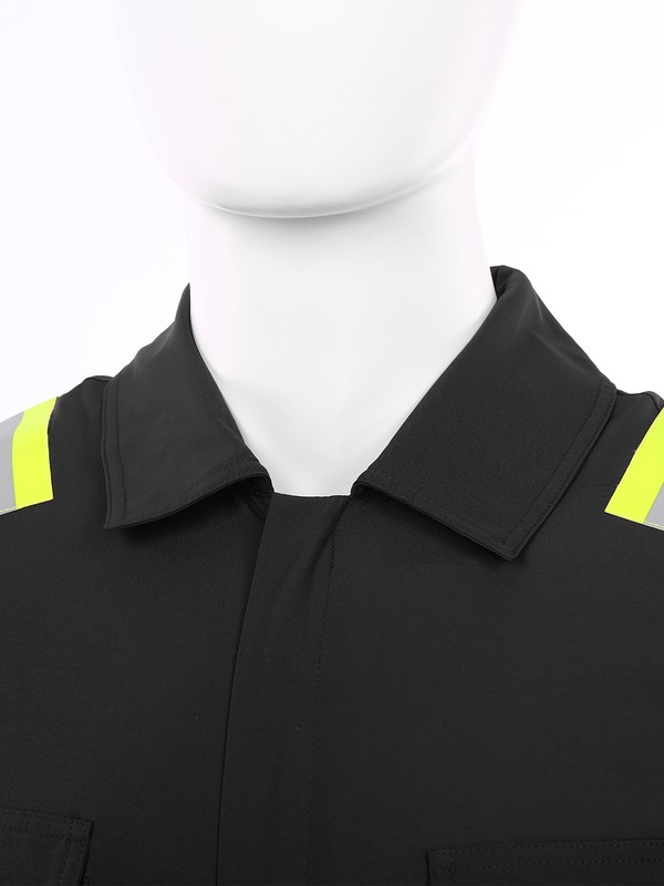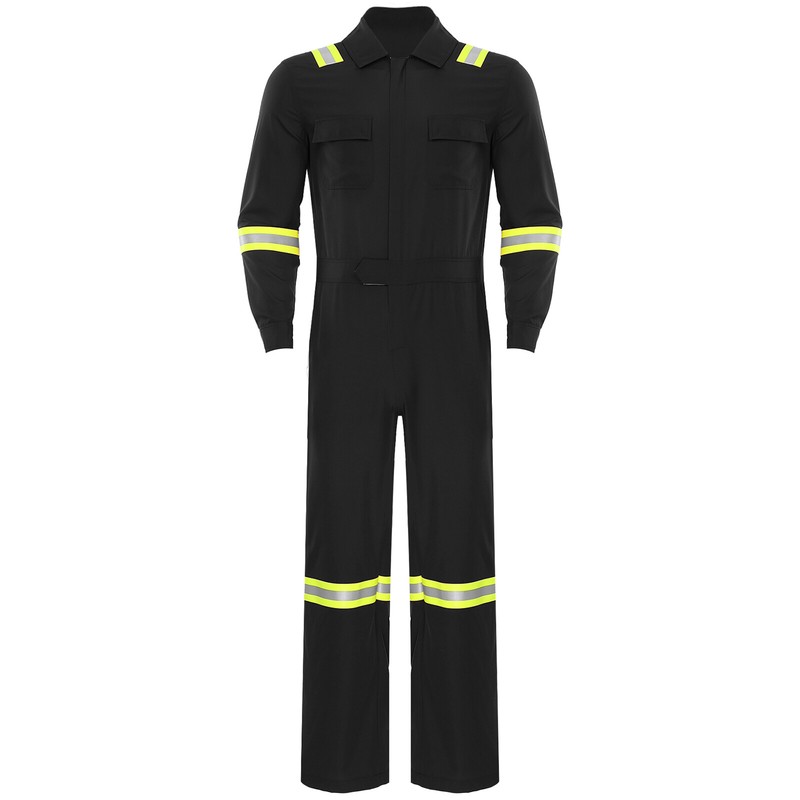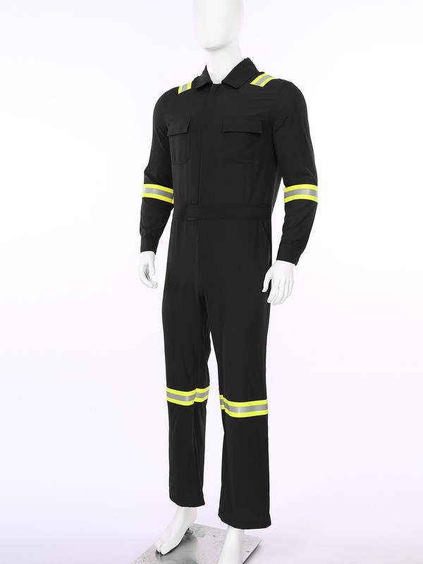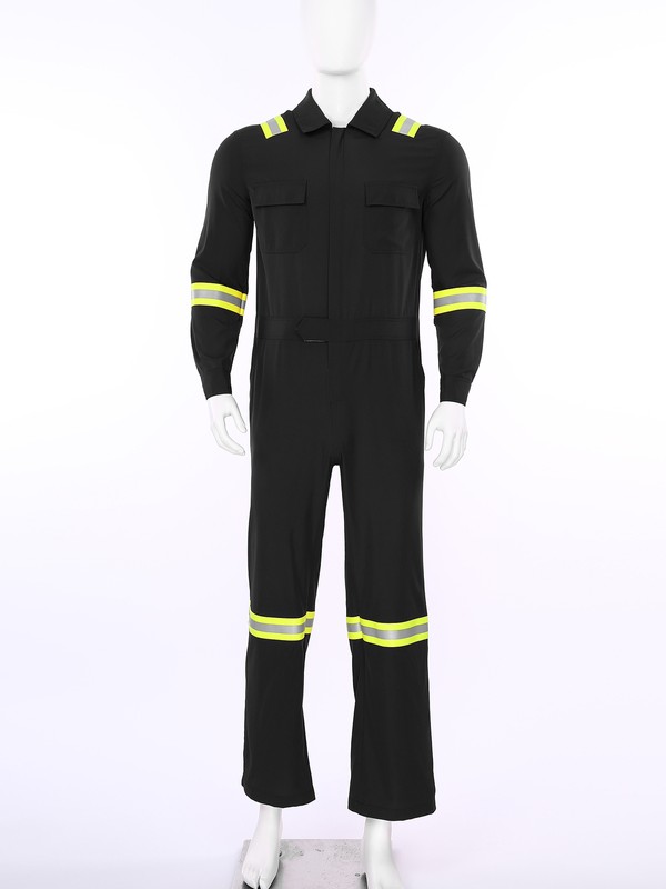Men’s turn-down collar long sleeve reflective jumpsuit with zipper on the front for easy wearing and taking off.
