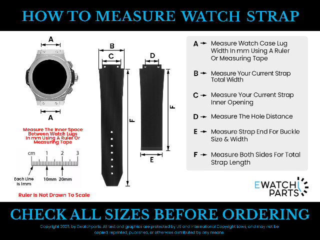 Be sure to check our detailed measurement guide below or in the photos/images section of the listing to assist you with purchasing the correct parts for the watch. The guide will show you how to measure the lug width opening of the watch using a ruler, how to check the model number, and assist you with other questions you may have regarding measurement. Watches may share a visual resemblance, yet variations in case size or year model can distinguish them. This will help to avoid any returns or exchanges. We are also an email away to assist with any questions you may have. Thank you for the business!