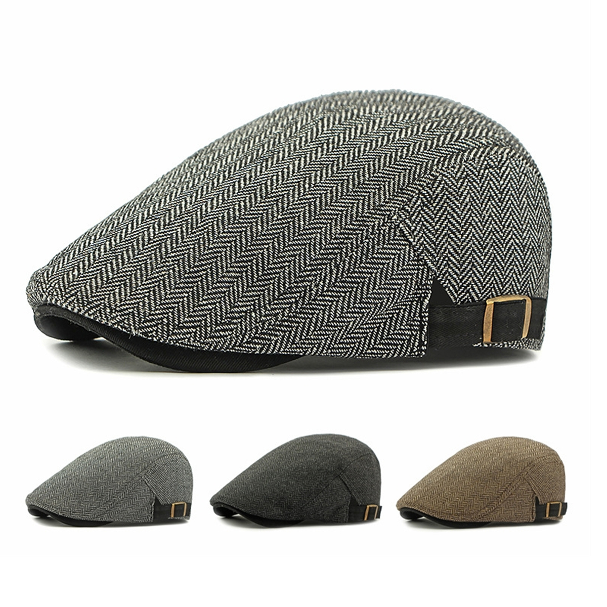 Men Adjustable Newsboy Gatsby Cap Tweed Ivy Hat Cabbie Driving Duckbill Beret