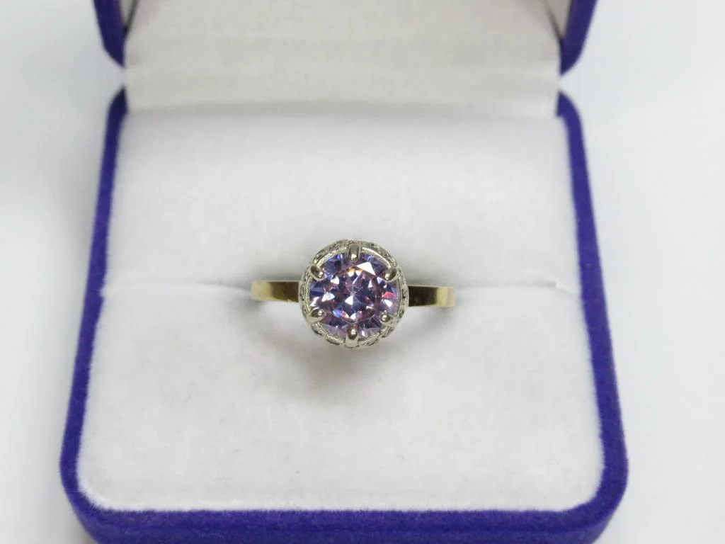 Vintage Unusual Sterling Silver 925 Ring Gold 375 (9k) Cubic Zirconia , Women's Jewelry Size 5.25 us