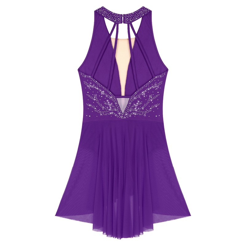 Sleeveless dance dress for women, embellished with rhinestone, sparkle under the light to brighten up any performance.