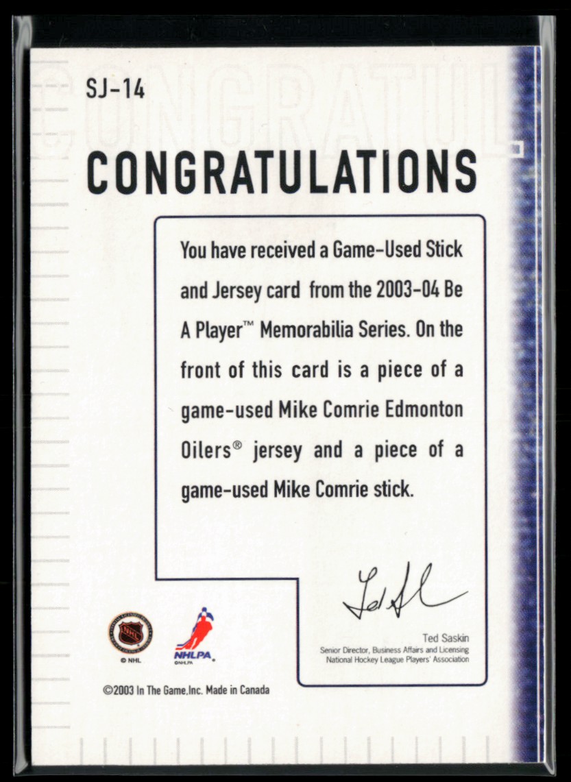 | 2003-04 BAP Memorabilia Jersey and Stick #SJ-14 Mike Comrie /90 |