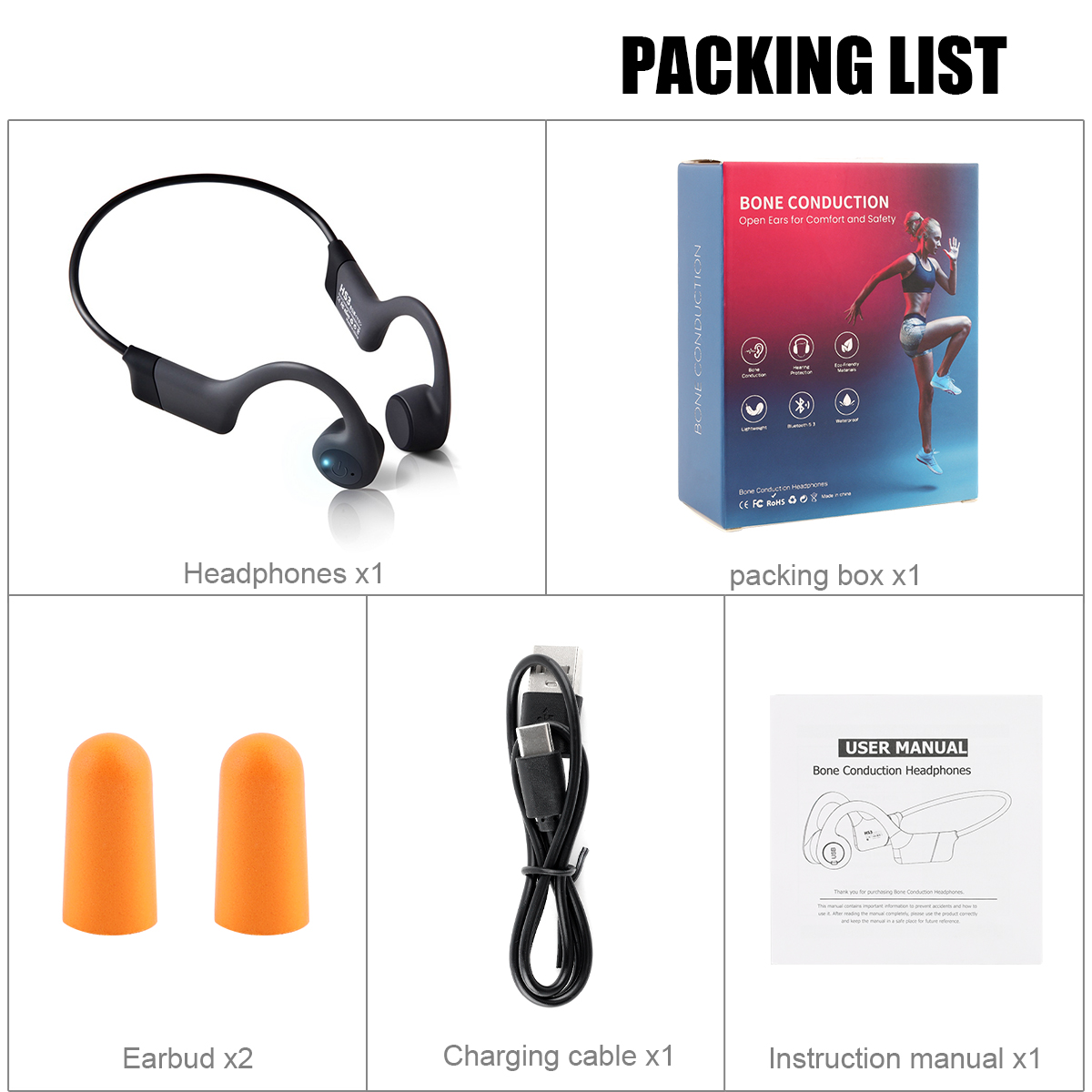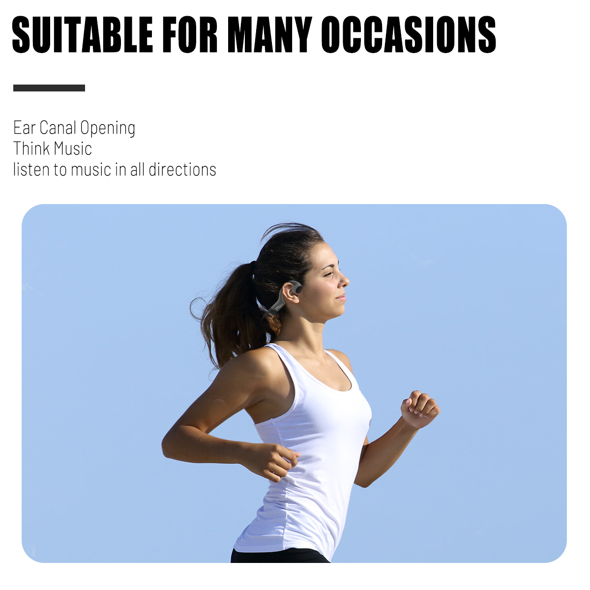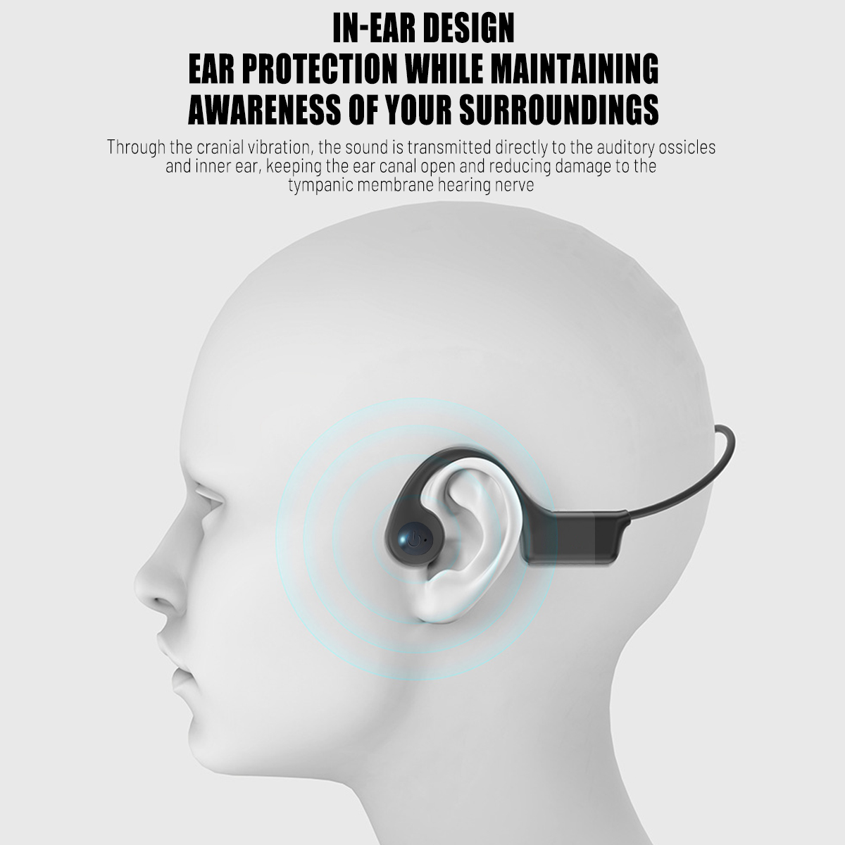 【Open-ear design】: This sports earphone adopts ergonomic design, innovative ear-stick hanging design features, wraparound frame and wireless, open-ear is suitable and comfortable. Bone conduction technology can deliver high-quality audio through the cheekbones to better help athletes avoid blocking their hearing. open ear headphone Enables you to feel the environment while listening to music. This can avoid dangerous situations because it ensures that both ears can fully hear what's going on around you. Make sure your sport communicates with safety.