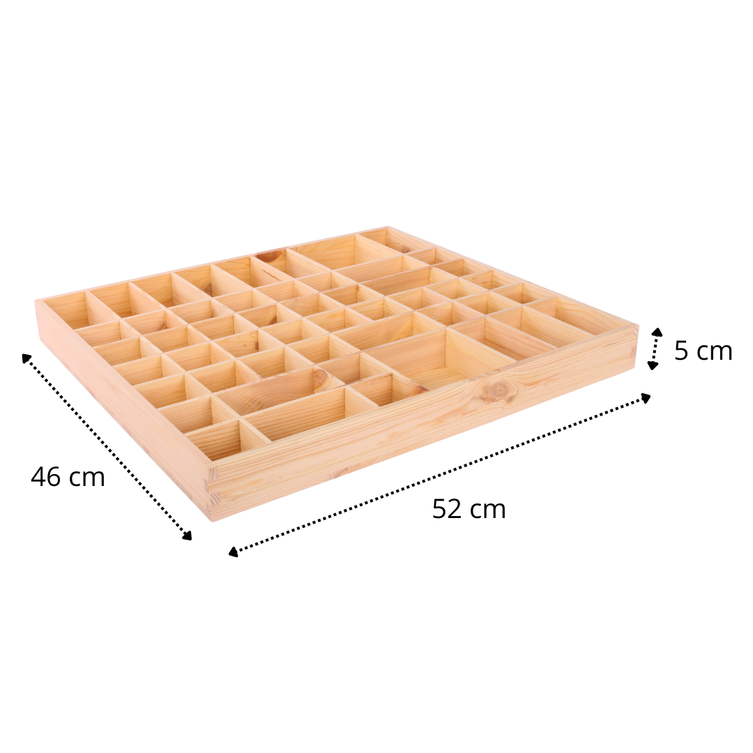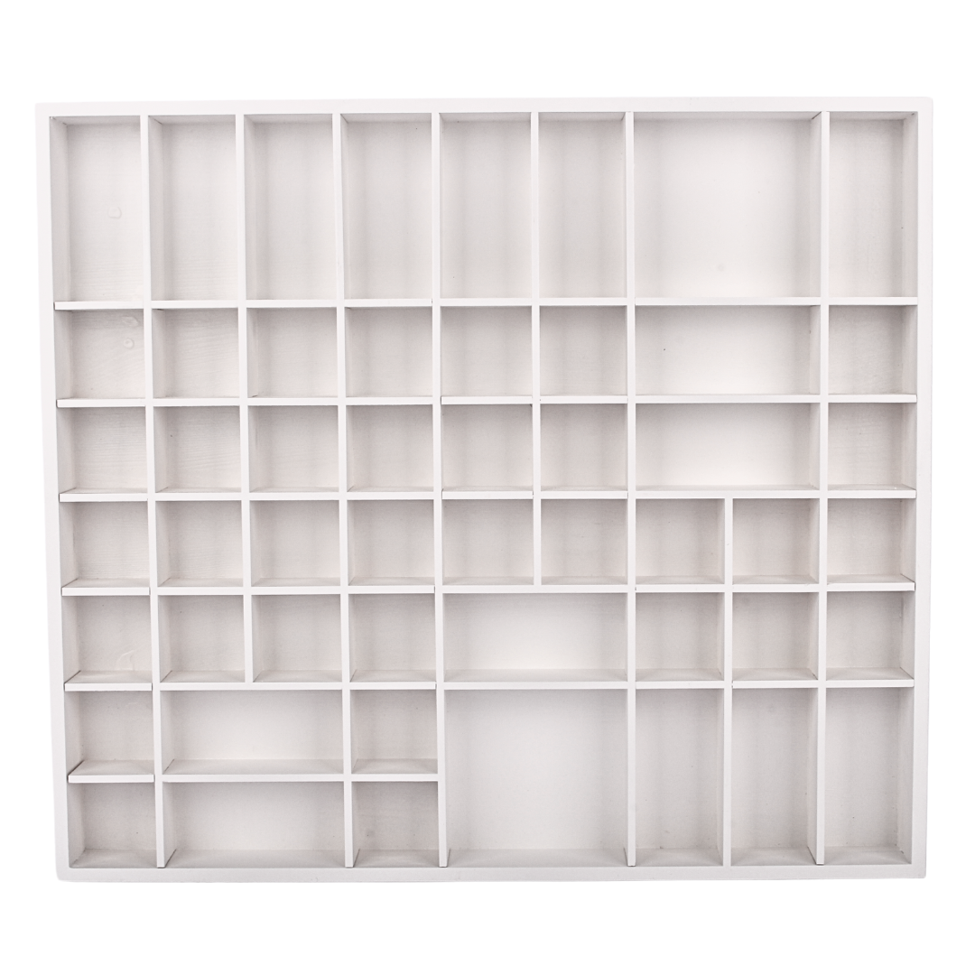 BINGO PROFI24PERFEKTE GRÖSSE – Mit einer Außenabmessung von 52 x 46 x 5 cm und 51 Fächern ist dieser Setzkasten ideal zur Aufbewahrung von Schmuck, Kosmetika, Accessoires oder Unterwäsche. Sie können ihn nach Belieben dekorieren oder als originelles Geschenk für eine wichtige Person verwenden. Perfekt zur Präsentation von Matchbox- und Tonie-Figuren, Sammlerstücken, kleinen Autos oder Nagellack. Hinweis: Keine Befestigungslöcher oder Werkzeuge im Lieferumfang enthalten!