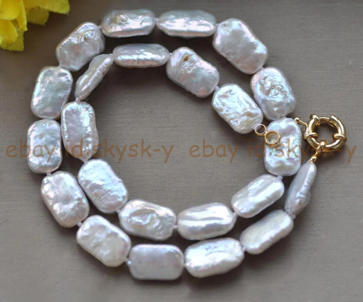 11-17mm Genuine Natural Unique White Freshwater Rectangle Pearl Necklace 14-48''