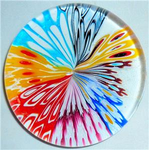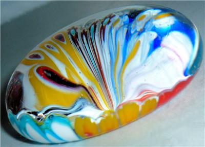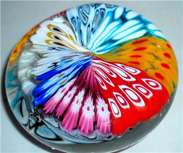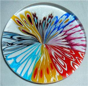 THIS IS A STUNNING SMALL ART GLASS PAPERWEIGHT WITH A LOVELY MULTICOLOURED ABSTRACT DESIGN