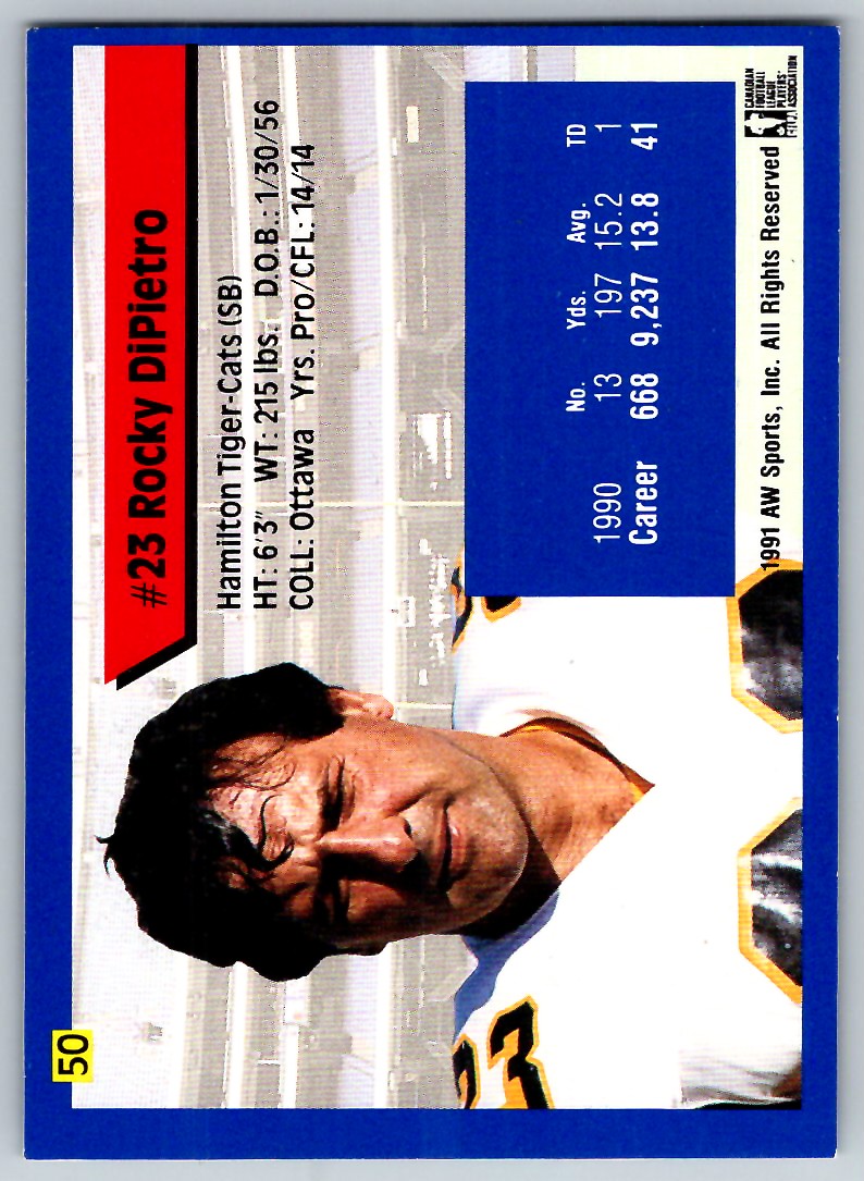 | 1991 ALL WORLD CFL ROCKY DIPIETRO HAMILTON TIGER-CATS #50 |