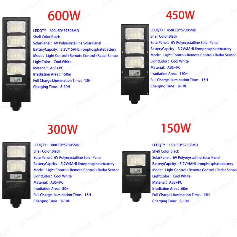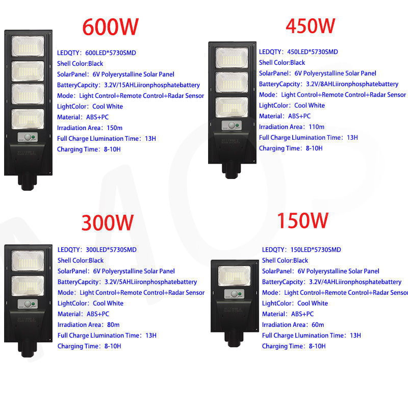 (Optional)1*(150W/300W/450W/600W)Solor Street Lamp(Lamp Shell Color: Black)+Remote Control+ Pole