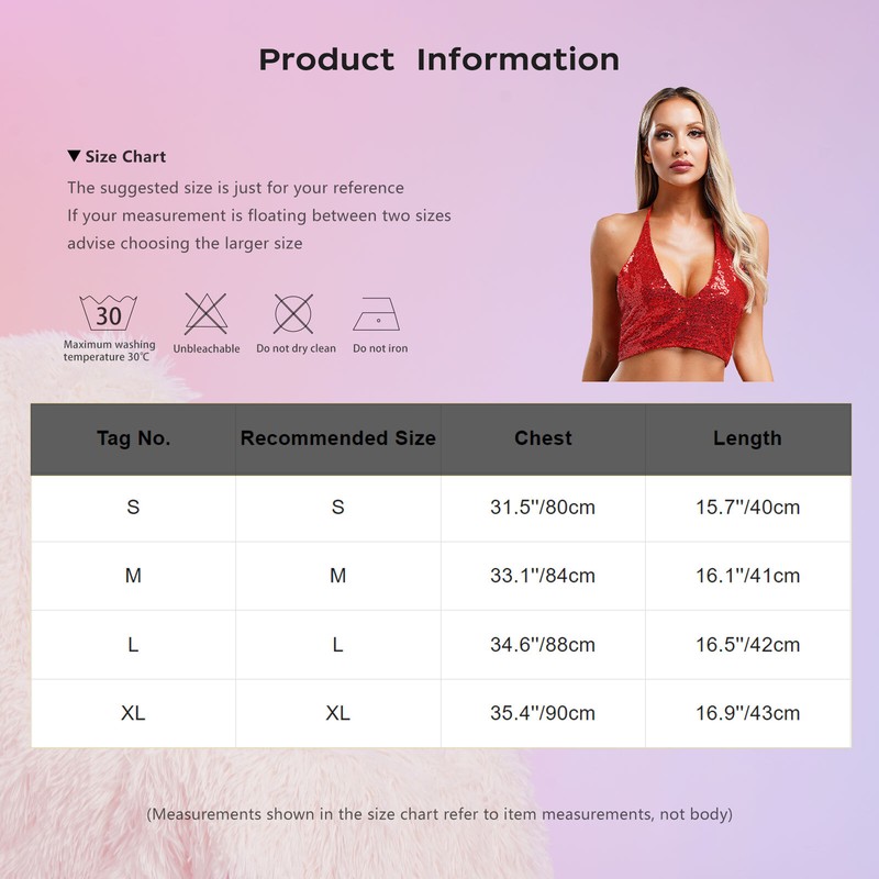 Suitable for nightclub, pole dance, jazz dance, music festival, night out, stage performance, stylish street wear, birthday party, etc. Size Chart