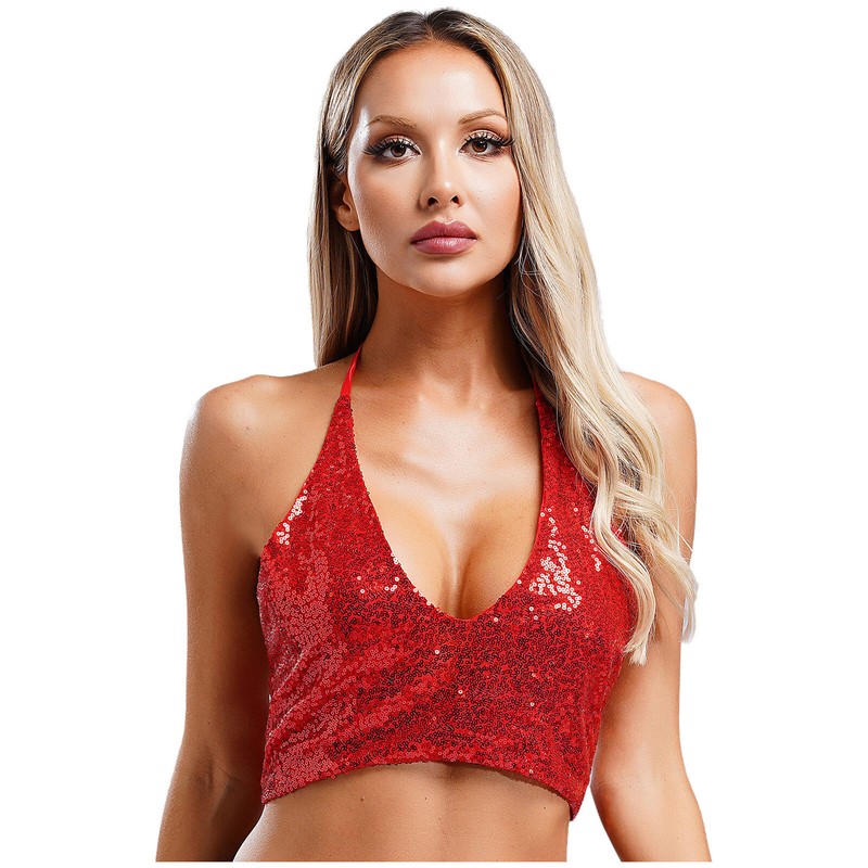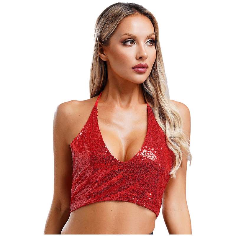 Women’s shiny vest is designed with halter neck, deep v neck, backless, lace-up at back and fully lining, making you superbly sexy.