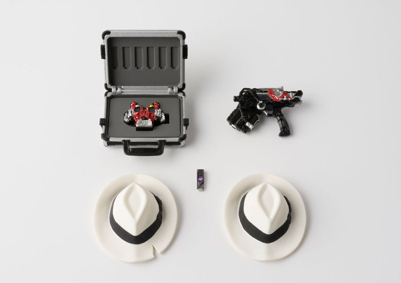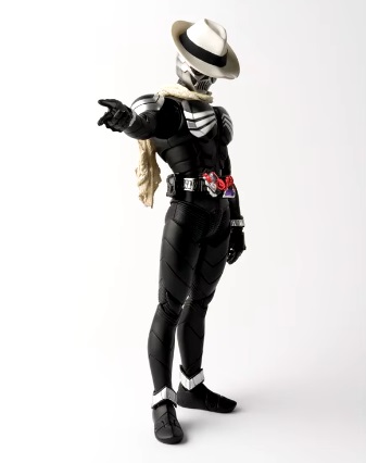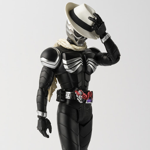Kamen Rider Skull from "Kamen Rider W" gets Bandai's deluxe Shinkocchou Seihou treatment! Featuring a superbly posable jointing system and an extreme level of detail, he comes with his scarf, 2 types of hats, the Skull Magnum, Gaia Memory, a case, an optional head part, and 5 types of interchangeable hands. Order this ultimate figure of Kamen Rider Skull today!