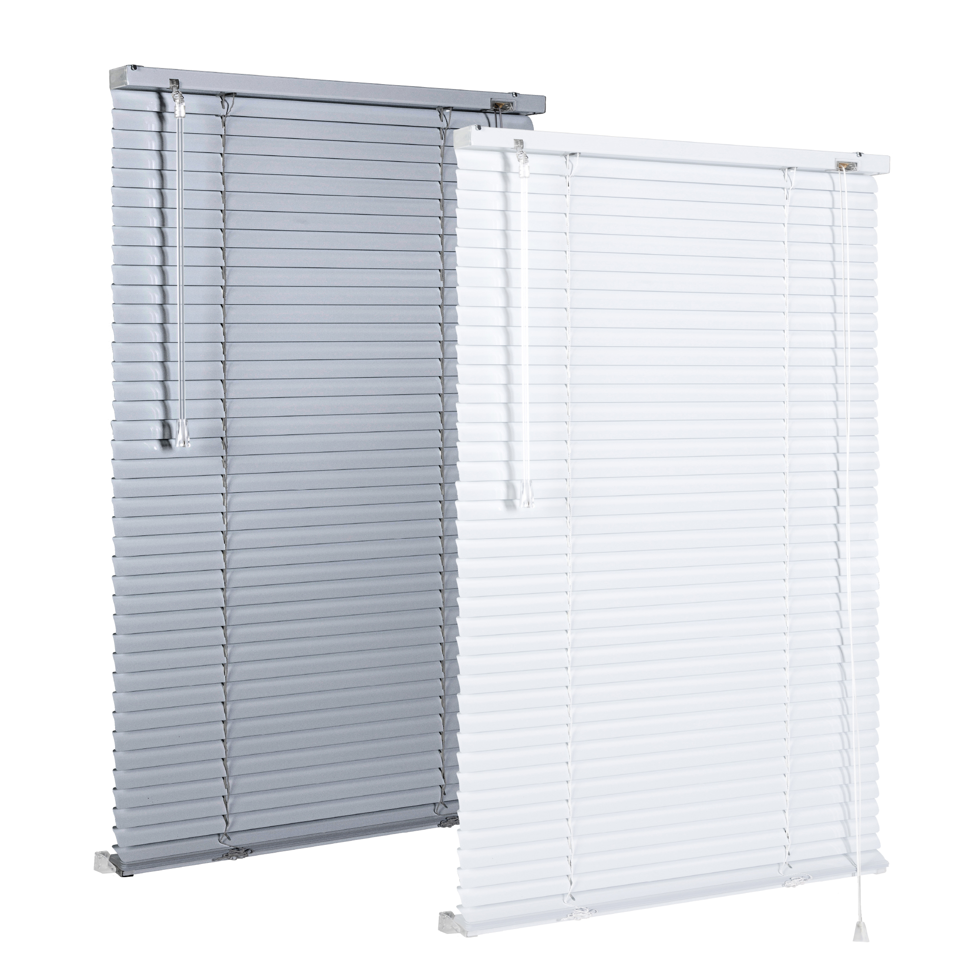 Die Klemmhalterungen für die Jalousien sind in einem neutralen Weiß gehalten und sind somit an den meisten Fensterrahmen kaum sichtbar. Die Elemente für die Montage mit Bohren sind speziell aus Aluminium konzipiert, was eine sichere und dauerhafte Installation gewährleistet. Mit diesen hochwertigen Komponenten können Sie Ihre Jalousien mühelos und zuverlässig anbringen, um Ihren Raum zu verschönern und gleichzeitig die Funktionalität zu verbessern.