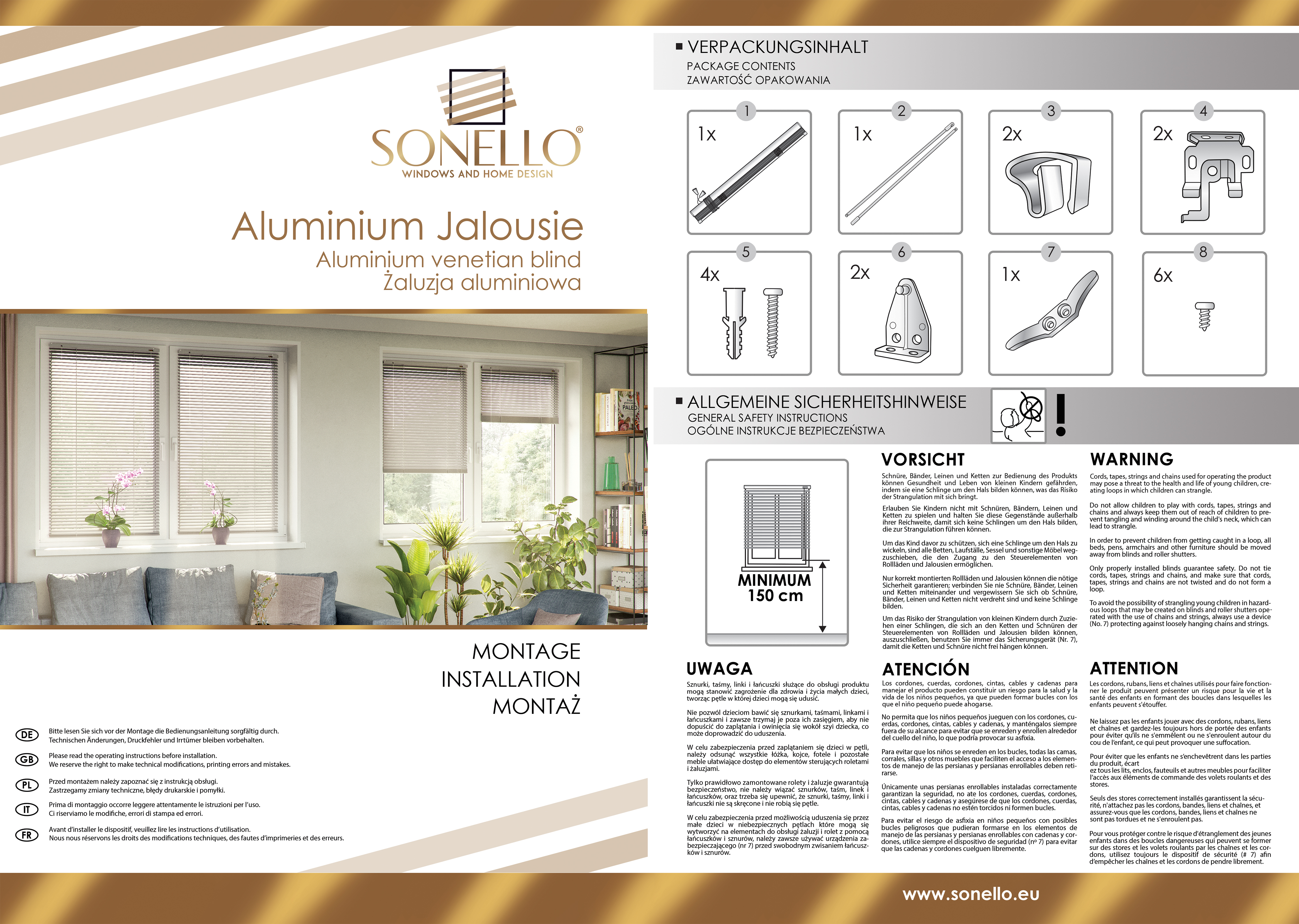 Die SONELLO Aluminium Jalousie ist nicht nur ästhetisch ansprechend und funktional, sondern auch sicher für Ihre Familie. Die kindersichere Ausstattung inklusive Sicherungshalterung für den Schnurzug minimiert mögliche Gefahren für Kinder und sorgt für ein ruhiges Gewissen.