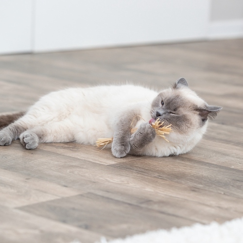 Der Trixie Matatabi-Stick mit Fransen ist das perfekte Spielzeug für Katzen. Der Stick ist aus einem Juteband und Bastfransen gefertigt und ist mit einer getrockneten Matatabifrucht gefüllt. Dieses natürliche Spielzeug regt das Spiel der Katzen an und unterstützt gleichzeitig die Zahnpflege. Der Stick misst 24 cm. Der Trixie Matatabi-Stick mit Fransen die perfekte Kombination aus Spielspaß und Gesundheitsförderung für Ihre Katze.