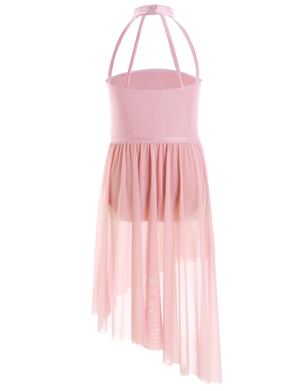 Built-in briefs provide extra coverage for ease of movement. Irregular sheer mesh skirt with flowy design shows the beauty of dance.