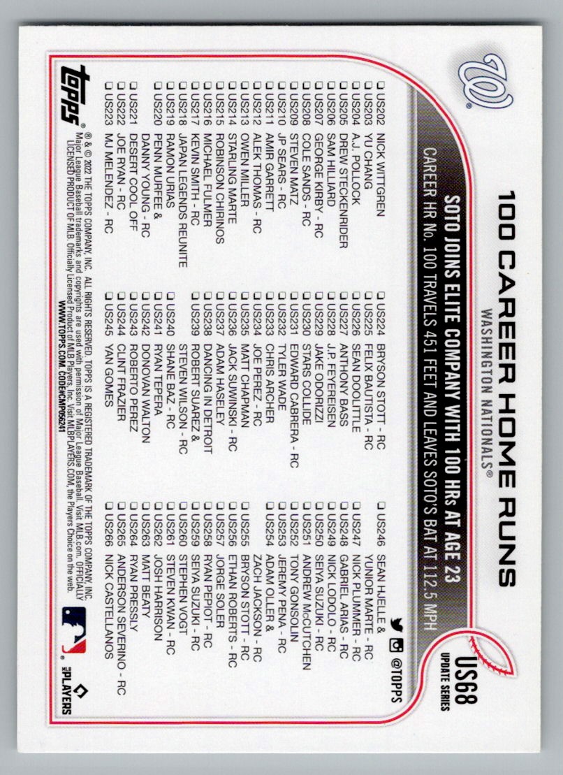 | 2022 TOPPS UPDATE 100 CAREER HOME RUNS CL, SH WASHINGTON NATIONALS #US68 |