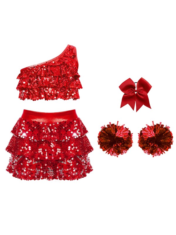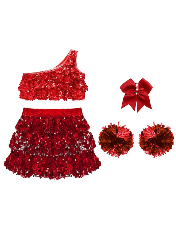 Dance performance outfit for girls, tiered design ruffles with shiny sequins, sparkle under the light to brighten up any performance.