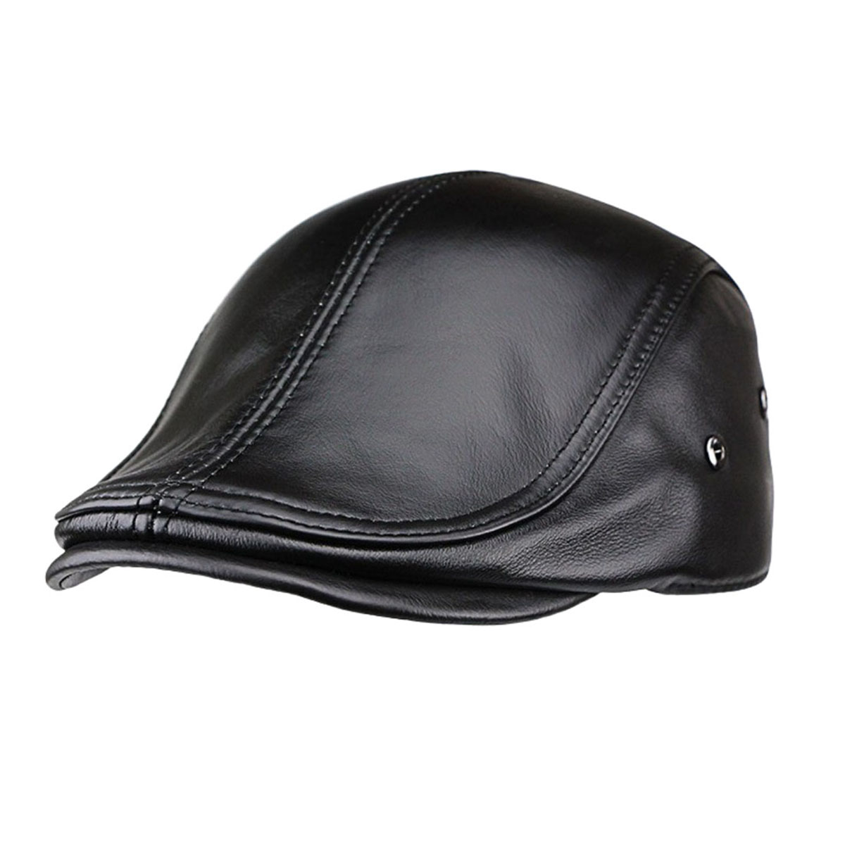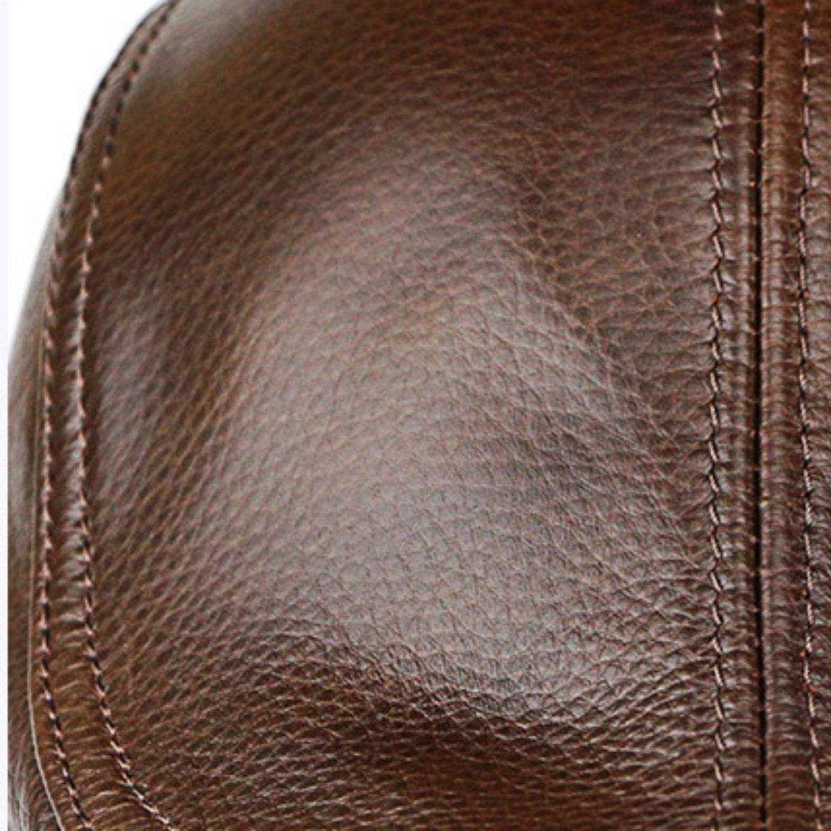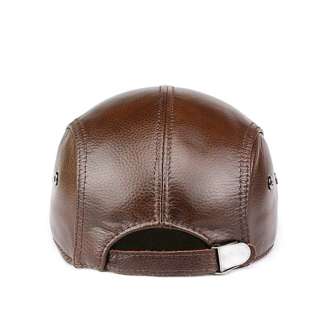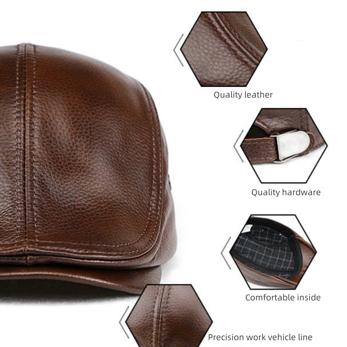 Genuine Leather Peaked Mens Cap Winter Warm Cowhide Baseball Cap Beret Hat Retro