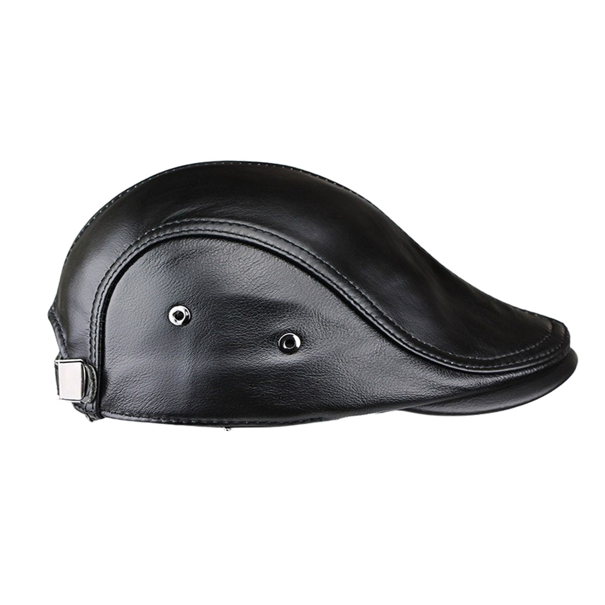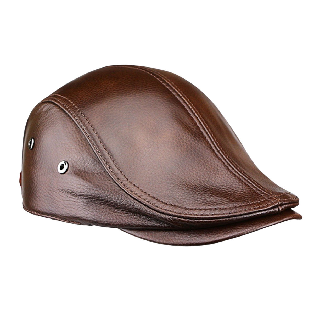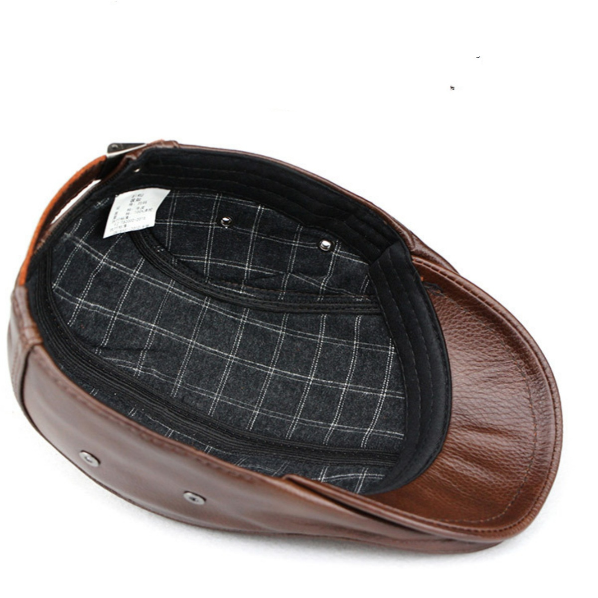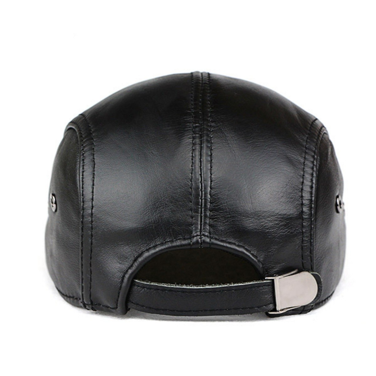 Genuine Leather Peaked Mens Cap Winter Warm Cowhide Baseball Cap Beret Hat Retro
