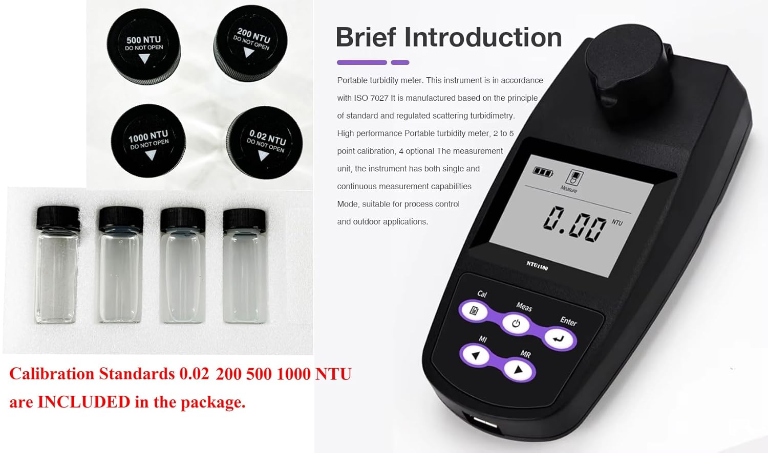 ▲Calibration Standards : 0.02 10.00 200 500 1000 NTU