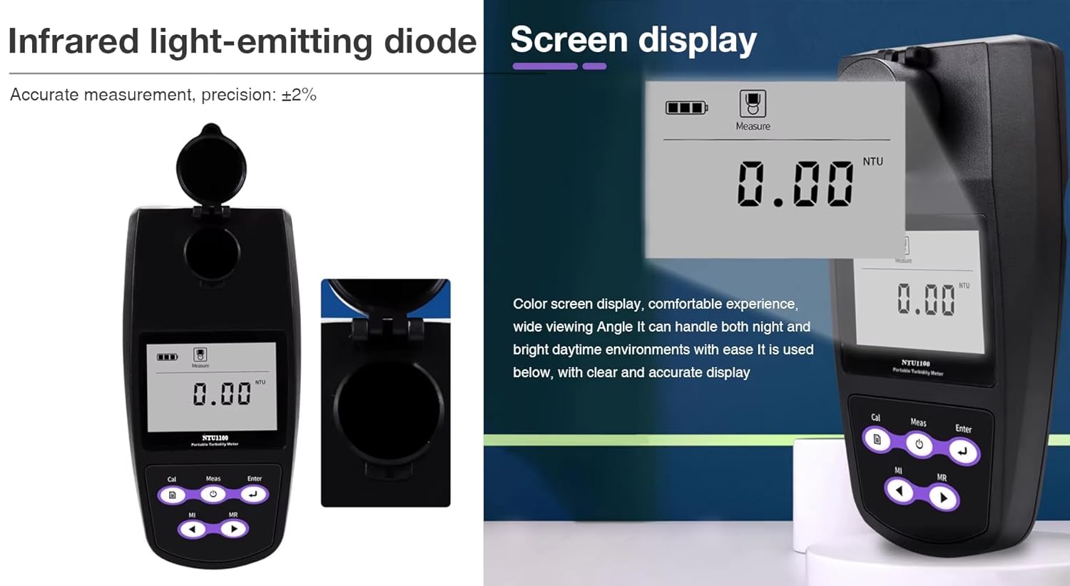 ▲Accuracy : ± 2% (0~500 NTU) ± 3% (501~1100 NTU)