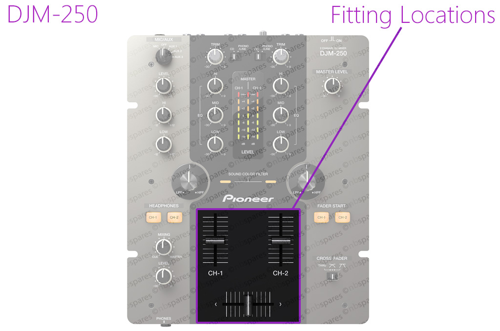 Diese werden auch als die verwendet Kanal 1 oder Kanal 2 Linie (Kanal) Fader -Assembly auf der DJM-250.