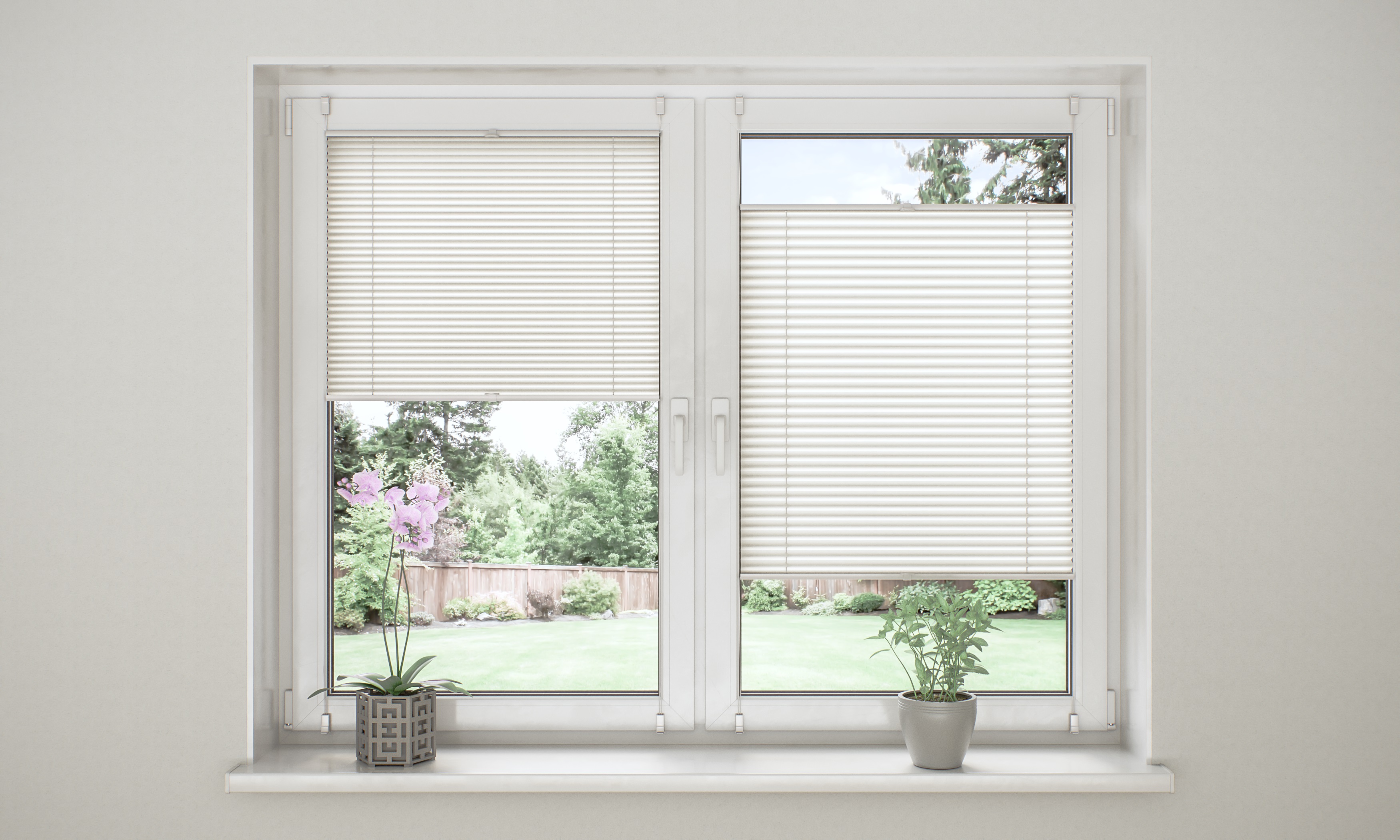 Durch die bewegliche Ober- und Unterleiste des Plissees haben Sie die Möglichkeit Ihr Fenster partiell oder komplett, je nach Ihren eigenen Bedürfnissen, zu bedecken, sodass Sie vor unerwünschten Blicken oder zu starker Sonneneinstrahlung geschützt sind ohne den Raum zu verdunkeln.